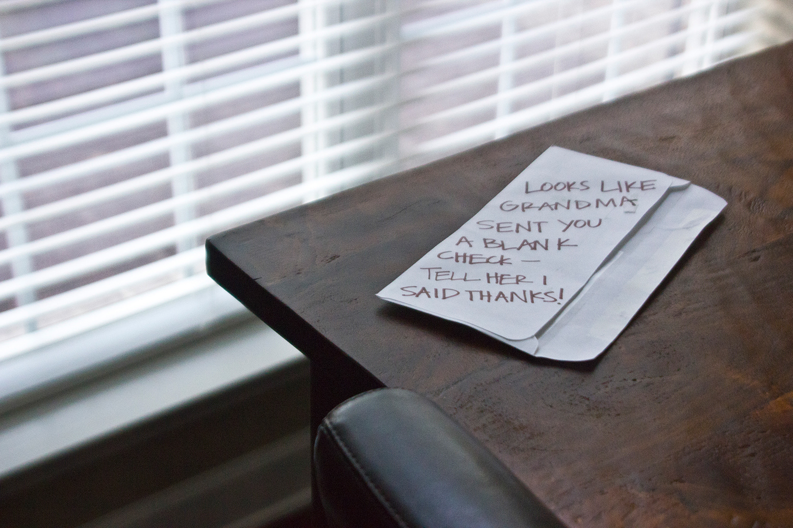 On the outside of the direct mail envelope, it will look like a thief wrote on it. Inside, they will find it is only a letter from alarm.com stating it isn't too late to protect their home.